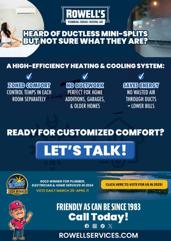 "Friendly As Can Be Since 1983!" When you need help with your plumbing, drains, heating, cooling or electrical in Newbury, you can always rely on Rowell's Services! Call us now or book online!